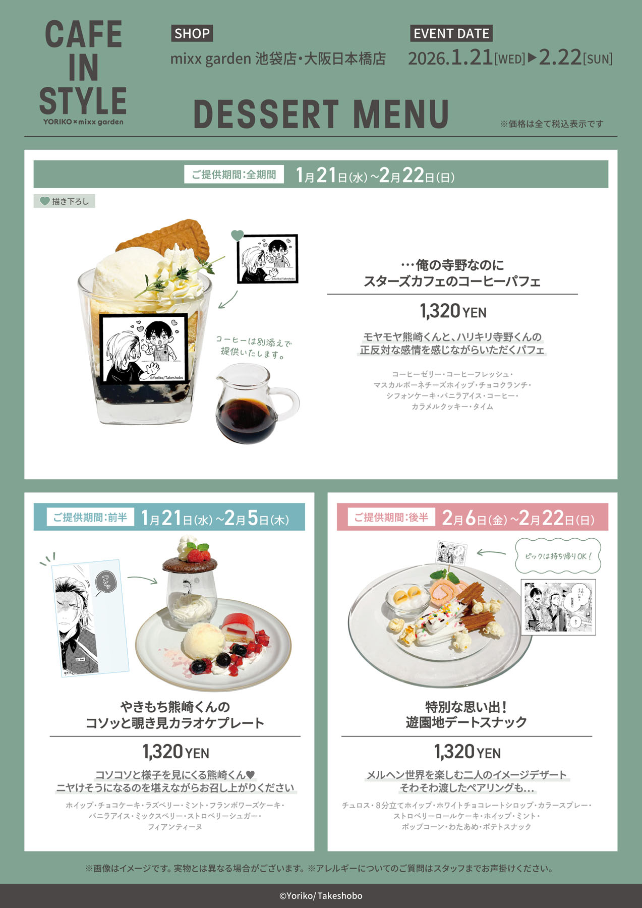 • アレルギー等ご心配なお客様は必ず店舗スタッフまでお声かけください。