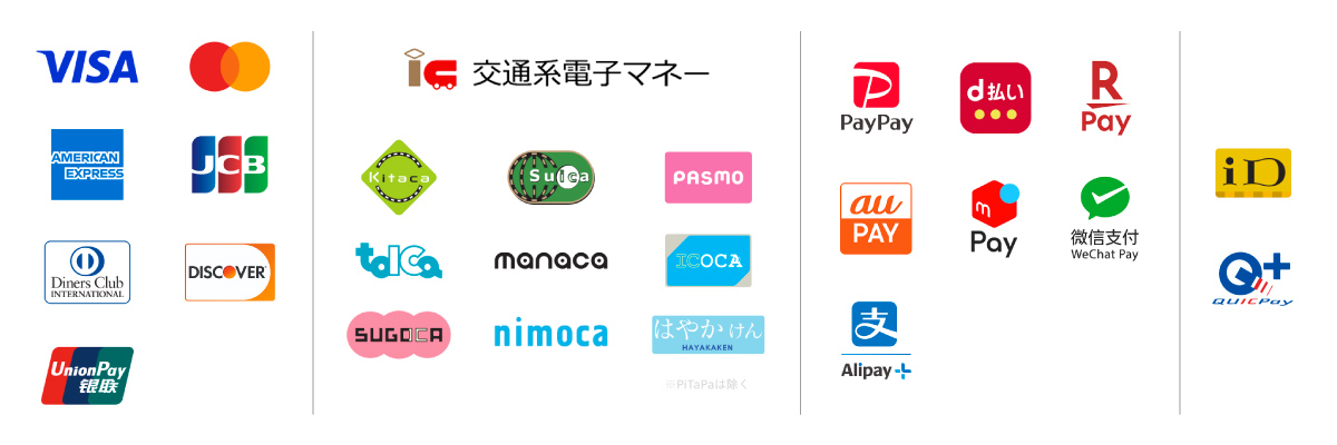 • QR決済(PayPay・d払い・楽天ペイ・auPAY・メルペイ・WeChat Pay・Alipay)