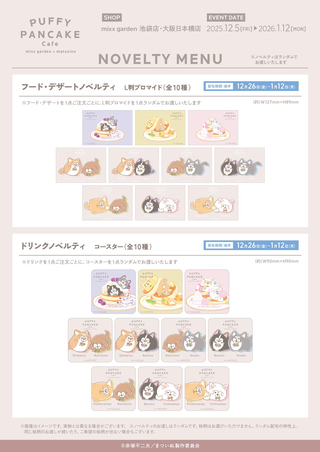 - グッズ・ノベルティ・ご提供メニューはお品切れになる場合がございます。販売をお約束するものではございませんので、あらかじめご了承ください。